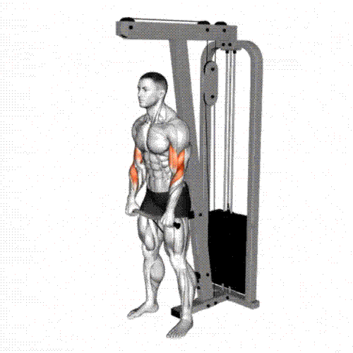 With the cable fixed at the bottom of the machine, straighten your upper body and grab the grip with both hands.