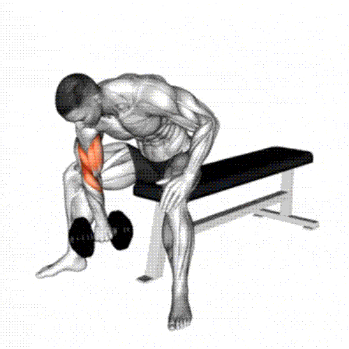 Sit on a bench with your elbow resting on your inner thigh.