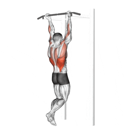 Grab a pull-up bar with a neutral or overhand grip (shoulder-width).