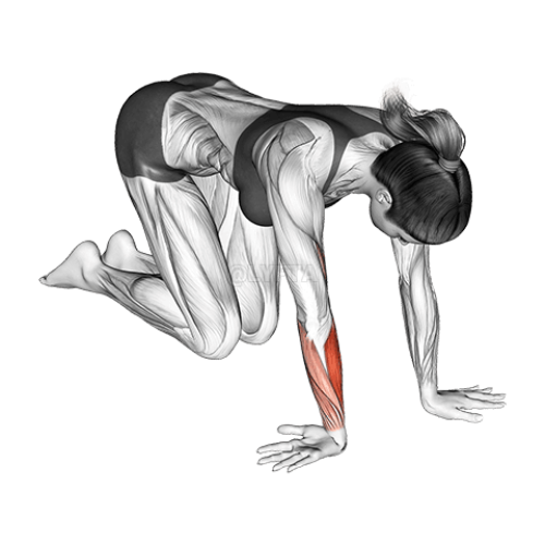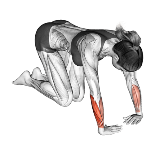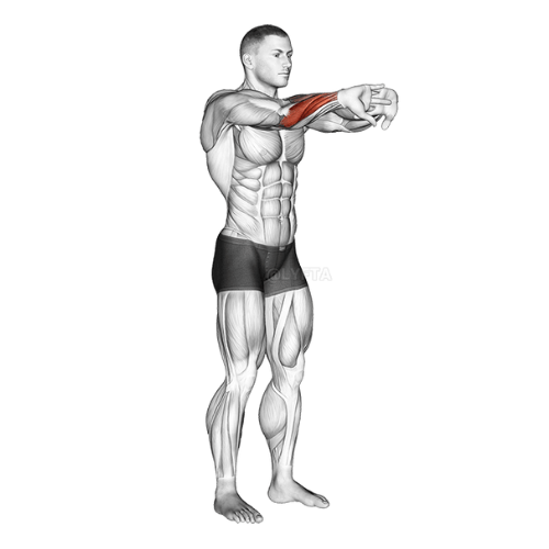 Keep your elbow straight, feel the stretch in the underside of the forearm.