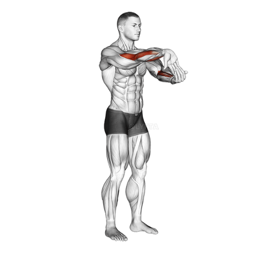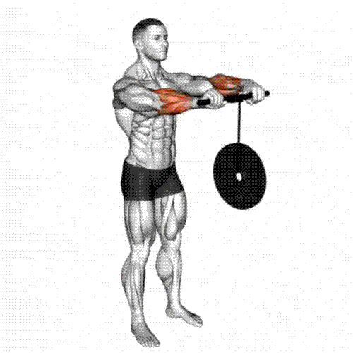 Raise the barbell with the feeling that you are raising your wrists as high as possible.
