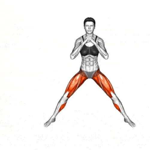 Lower until knees are bent deep, then push back up.