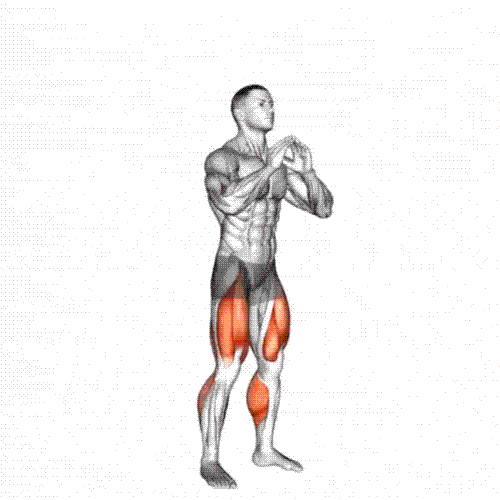 Lower until knees are bent deep, then push back up.