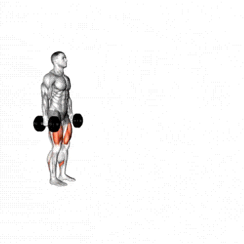 Hold dumbbells at sides, stand tall.