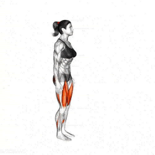 Stand tall, hands on hips or with dumbbells.