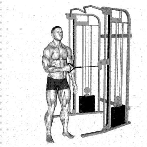 Hold the cable handle, forearm forward.