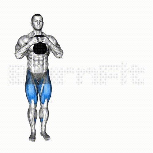 While maintaining the upper body position, press your feet off the ground and stand up